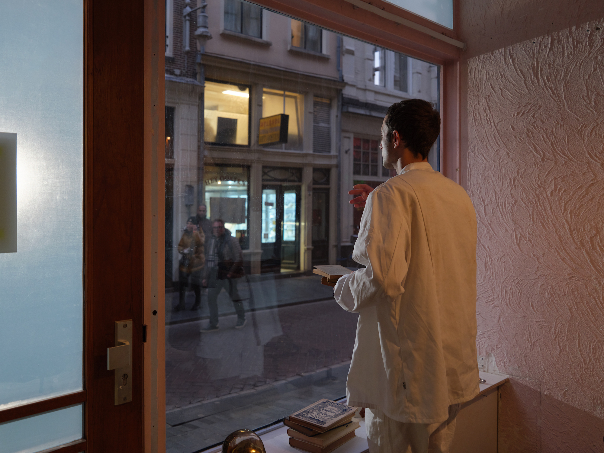 The Week Before is a durational performance set in a staged living room. Behind this window, a character reenacts the last week of their life before entering a clinic designed for those who seek healing from the noise of a fragmented world.